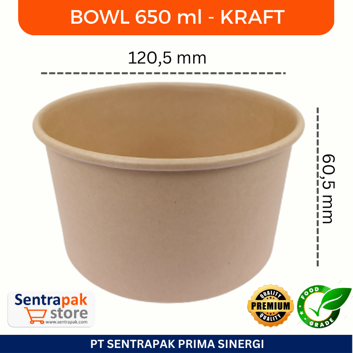 Paper Bowl 650 ml Kraft - Mangkok Kertas Tahan Panas - Rice Bowl Paper